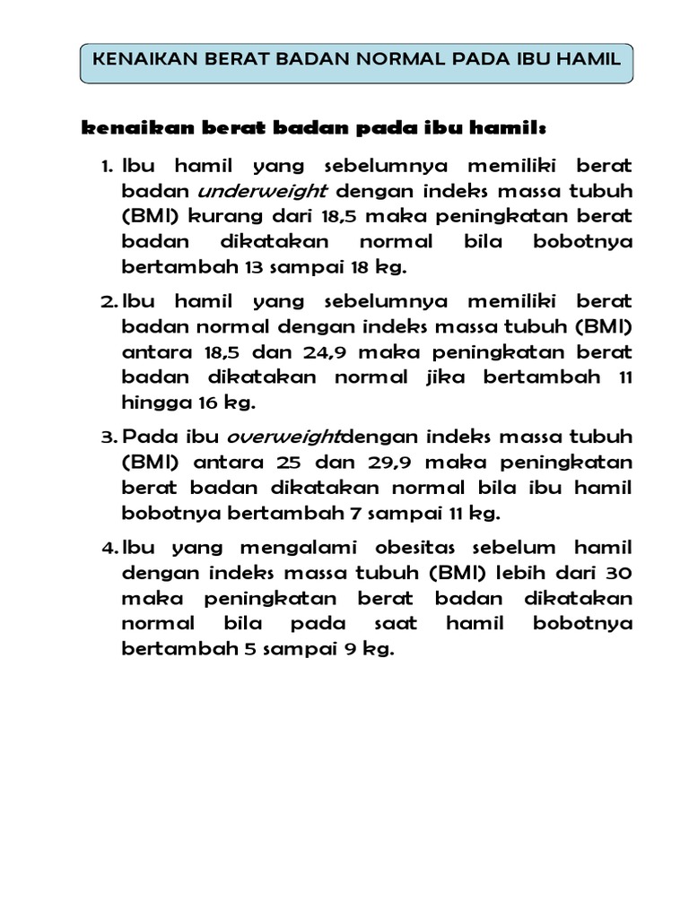 Related : Suhu Badan Normal Ibu Hamil / Peningkatan berat badan pada ibu hamil tidak boleh terlalu banyak atau sedikit, harus disesuaikan dengan rekomendasi yang berlaku..